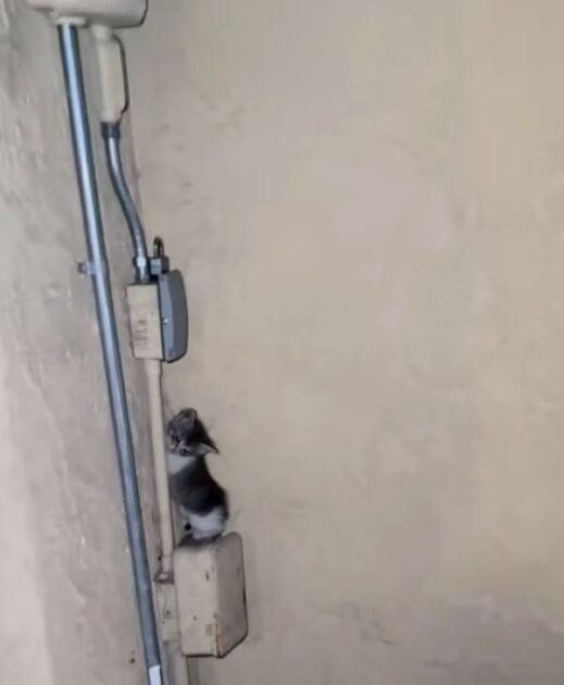 Looking around, Siena’s eyes landed on a tiny kitten, perched on top of an electrical box. She could hardly believe what she was seeing.