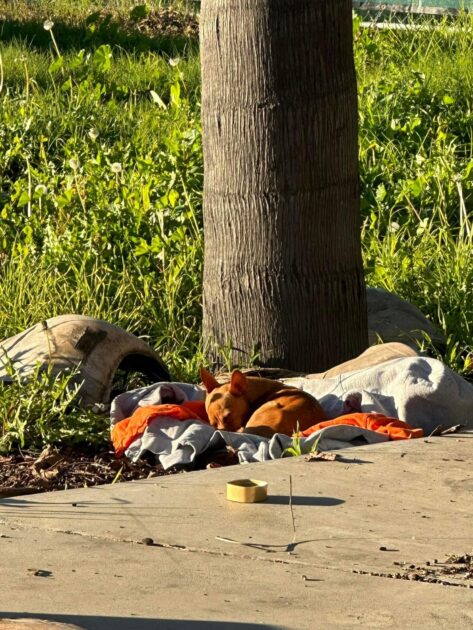 California Workers Spot A Puppy Curled On A Blanket And Realize He Has Nowhere To Go