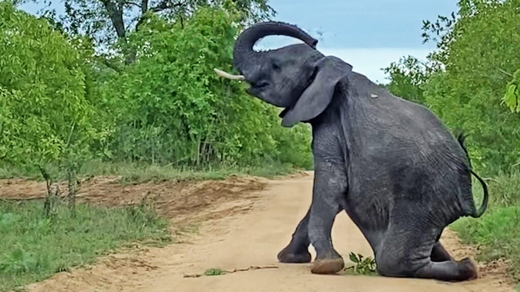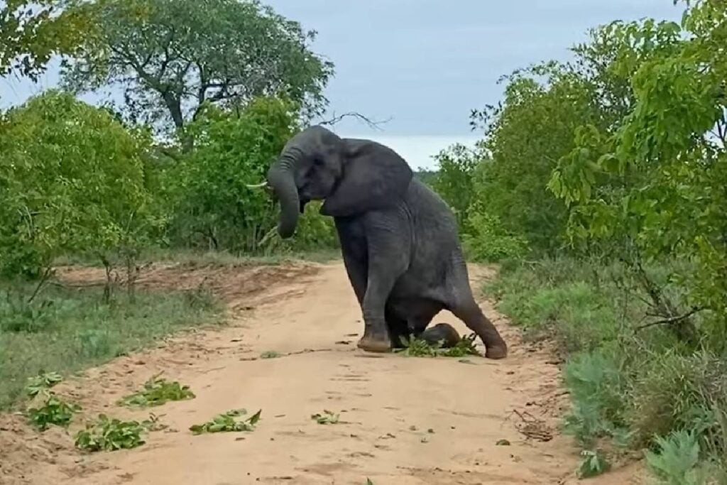 This is especially true in game reserves where elephants and vehicles often share the same narrow roads. While such a scene might feel playful or even comical, it is usually rooted in communication, caution, and the animal’s need for space.