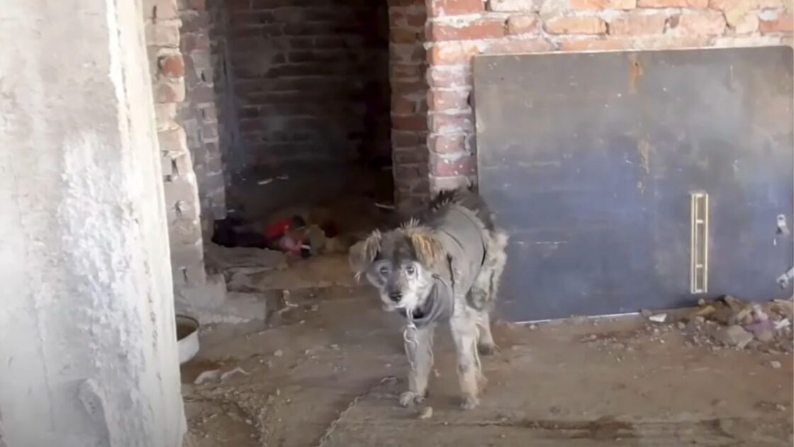 stray dog in abandoned building