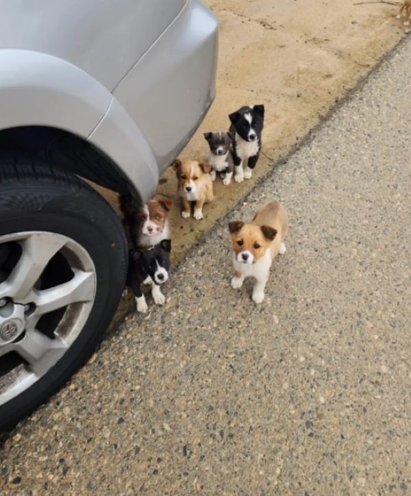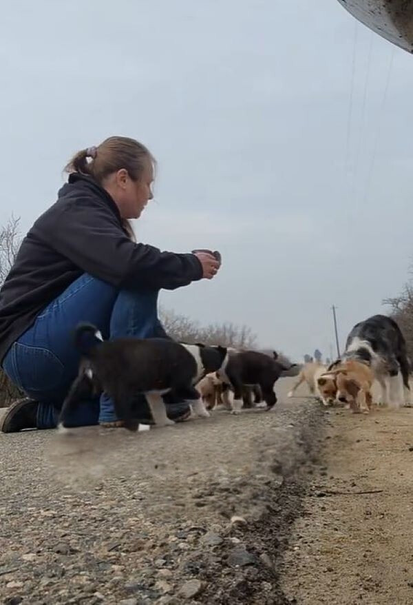 A ranch worker nearby informed Weiss that he had been feeding the family for several days, likely saving them from starvation. He also shared that the mama dog originally had eight puppies, but one had been taken by a coyote.