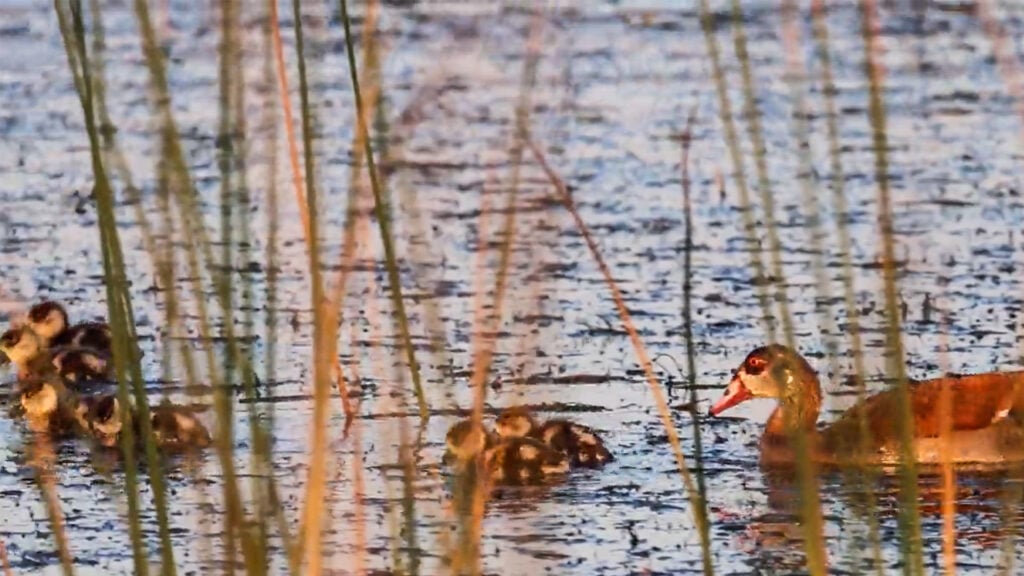 As it happens, they couldn’t have hoped to have a more protective pair of parents. Like all geese, Egyptian geese have a reputation for being aggressive, especially when defending their offspring and territory.