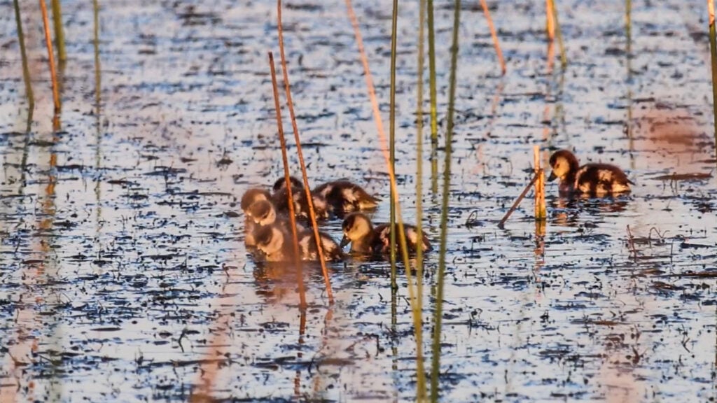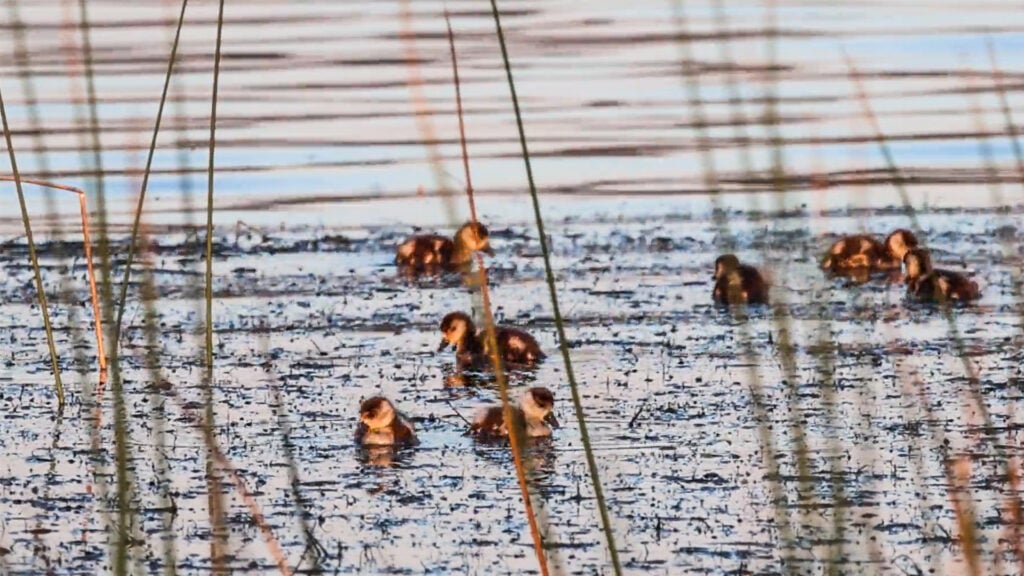 Soon enough, one of the parents laid claim to the intended overnight accommodations: a tangled island of reeds, waterlilies and miscellaneous muck.