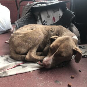 Today, Ruby continues to live with McCallum, offering warmth and companionship. She even helps welcome new foster dogs into the home, her gentle spirit guiding them toward comfort and safety.