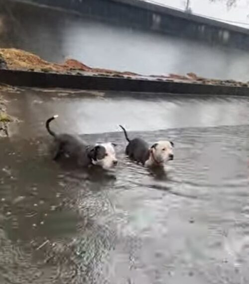 There, beside the flowing creek, a mother dog was in the middle of labor, bringing a litter of tiny puppies into the world.