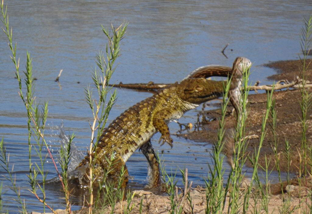 But, after swiping back and forth and left and right, all the crocodile succeeded in doing was to tire itself out. Consequently, it had to take a break.