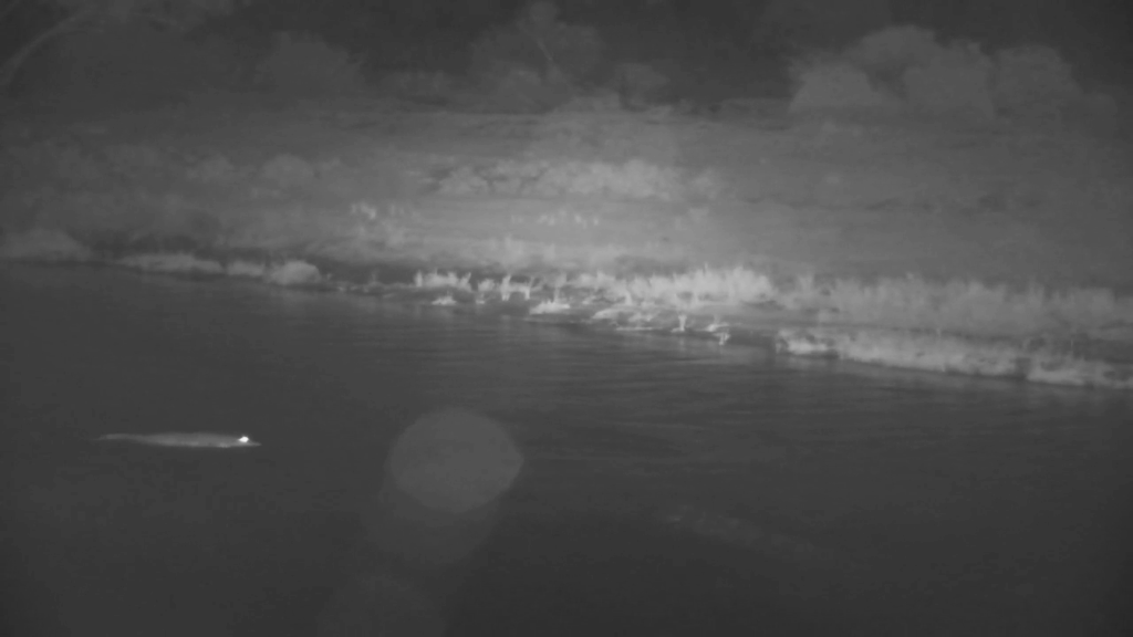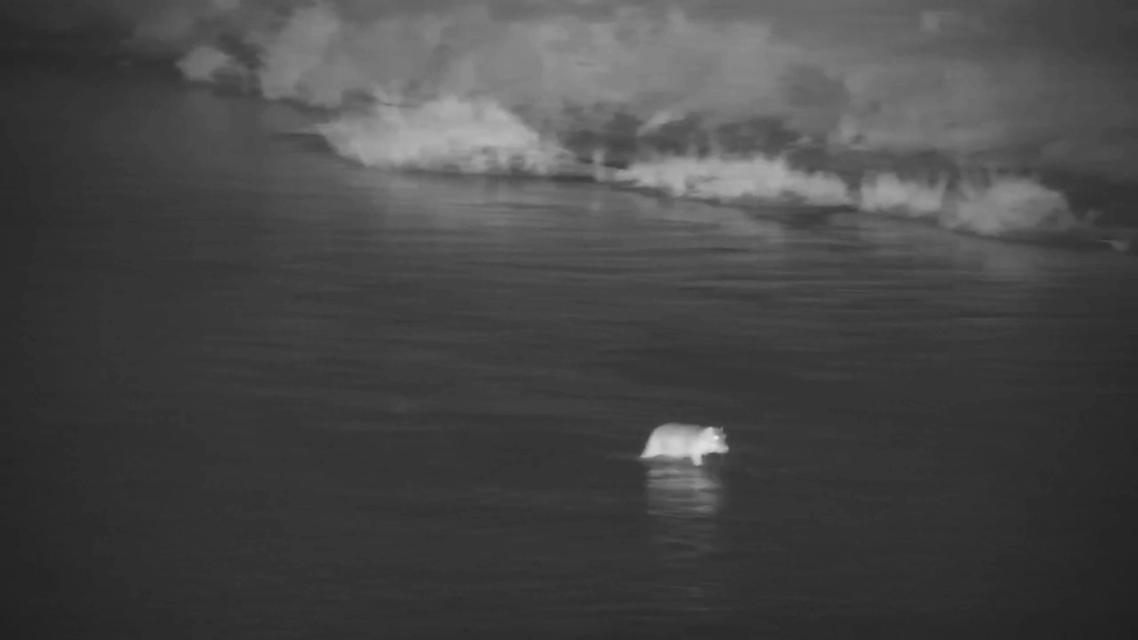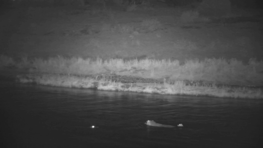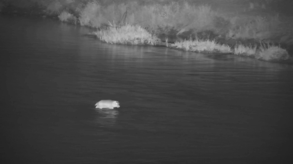 The baby hippo came into view first, wading through a shallow patch of water close to the bank. It looked alone and exposed, and at this point of the footage it was vulnerable to any predators that were in the immediate area.