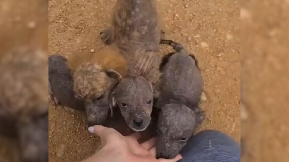 The good humans’ hearts broke into pieces when they arrived at the desolate place and saw three naked puppies running toward them.