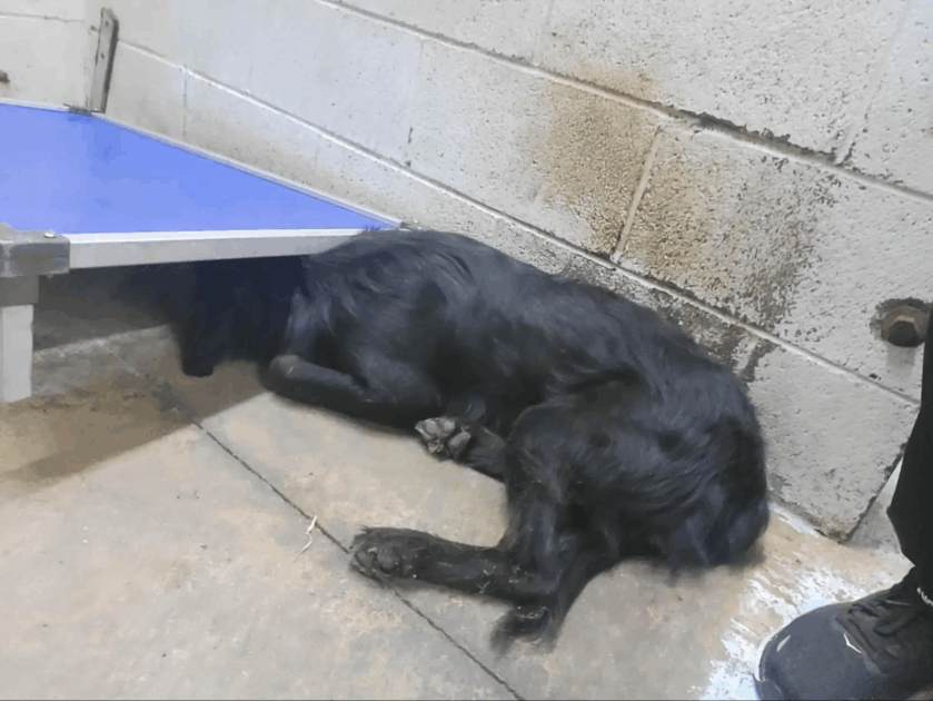 “Since the day he arrived at the small, overcrowded shelter, Flapjack has done one thing: Pressed himself flat against the concrete floor,” the New Jersey shelter shared on Facebook.
