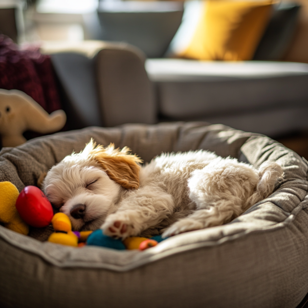 Make sure your dog’s sleeping space is comfortable, quiet, and free from distractions. A good dog bed, a calm room, and a consistent sleeping schedule are key.