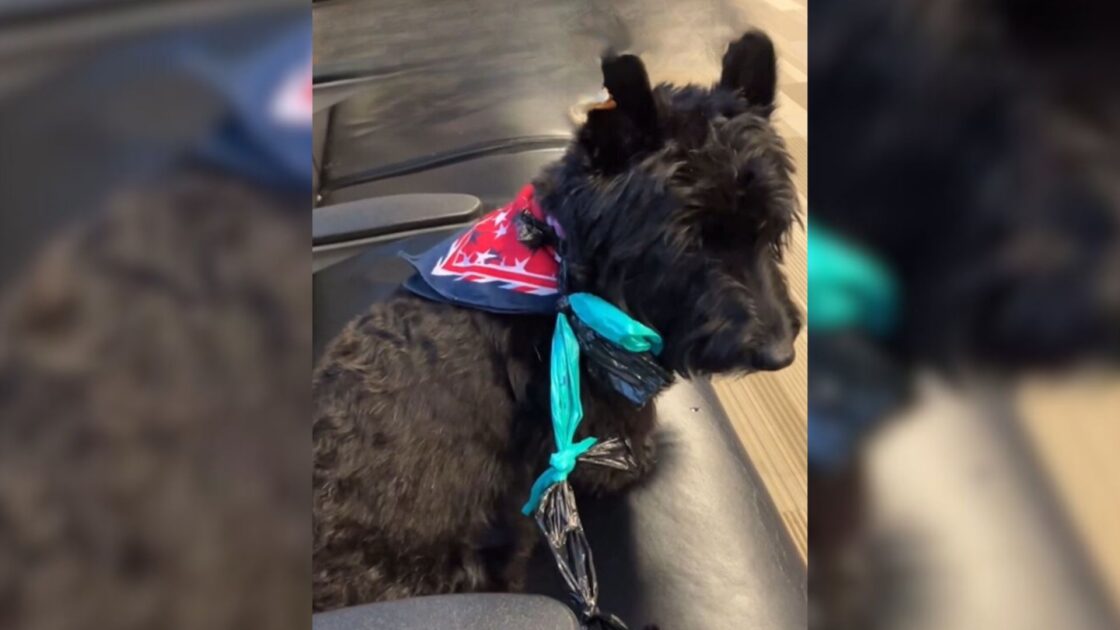 “We are at the airport and realized we forgot the leash… This is our only option,” Lucy’s mom wrote in the video.