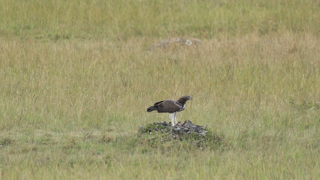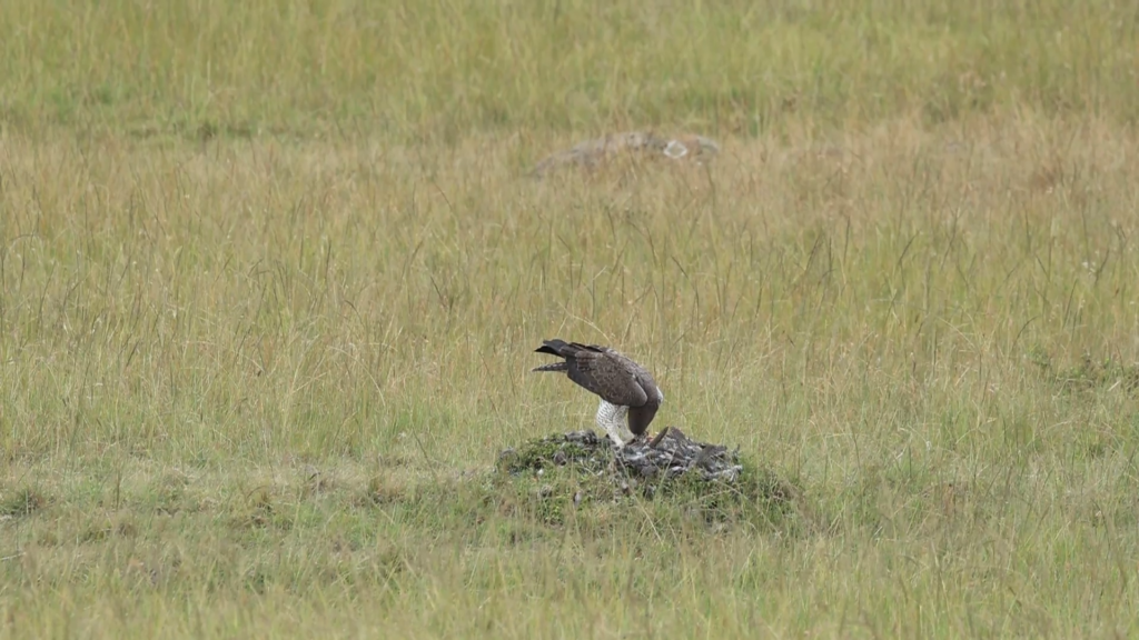 The eagle appeared to have brought down the guinea fowl on an open plain, which meant there was no where the eagle could retreat to for cover, but it also meant that it would be able to see any other threats of thieves coming.