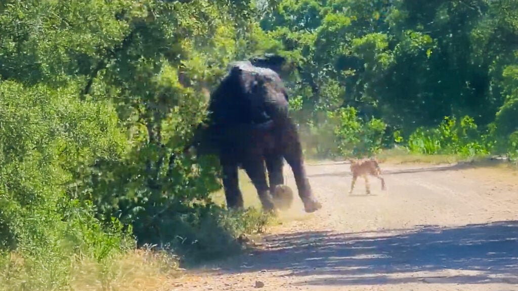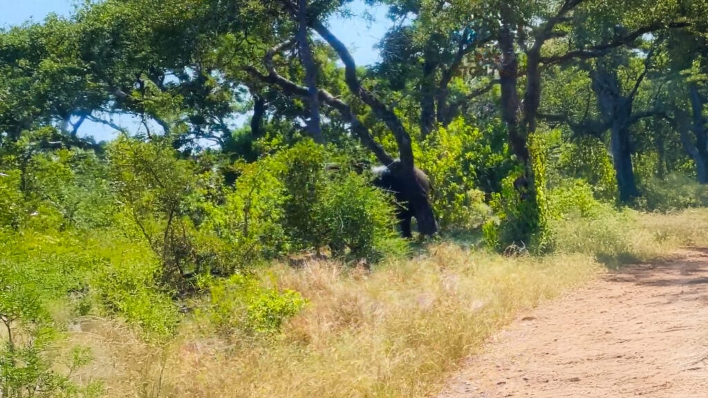 This sighting is a perfect example of responsible safari etiquette. The guide didn’t panic or try to outrun the elephant. Instead, they reversed slowly and calmly, allowing the elephant to reclaim its comfort zone without conflict.