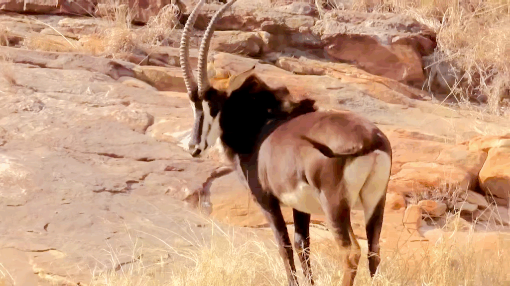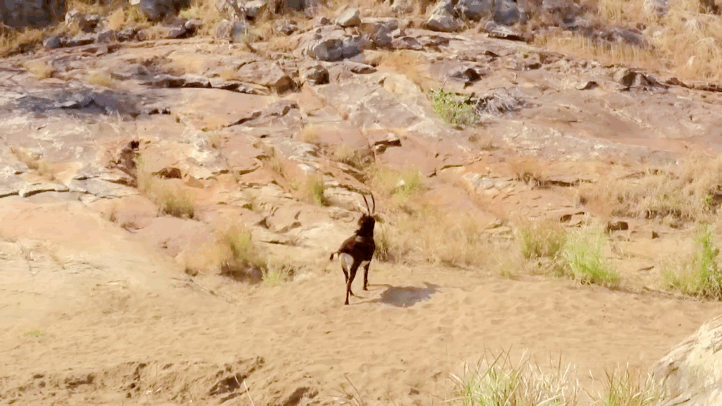 Suddenly, and for no immediately obvious reason, the sable starts moving rapidly away. But what could have caused this typically bold animal to rush off?