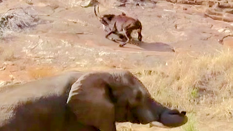 Subsequently, when the elephant finds there is no water to be had, he decides to move along. As he does so, he again encroaches on the antelope’s comfort zone.