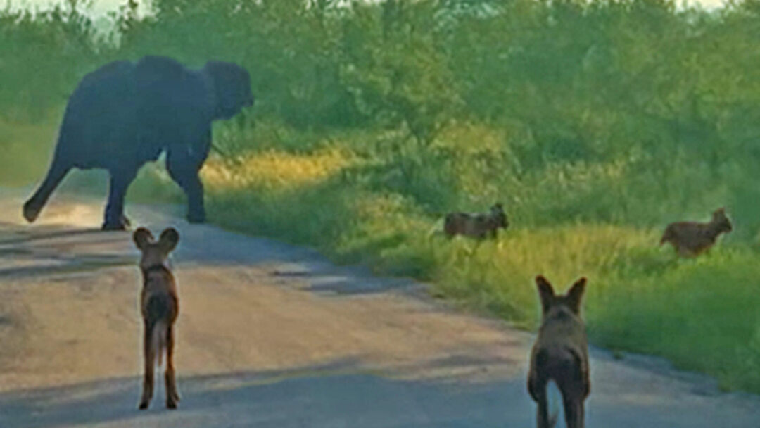 Elephants may chase off wild dogs simply to avoid the stress of their chaotic movements or to prevent them from hunting near elephant calves. In this sighting, the dogs likely had no idea they were about to trigger such an intense reaction, or may not have seen the elephant at all.