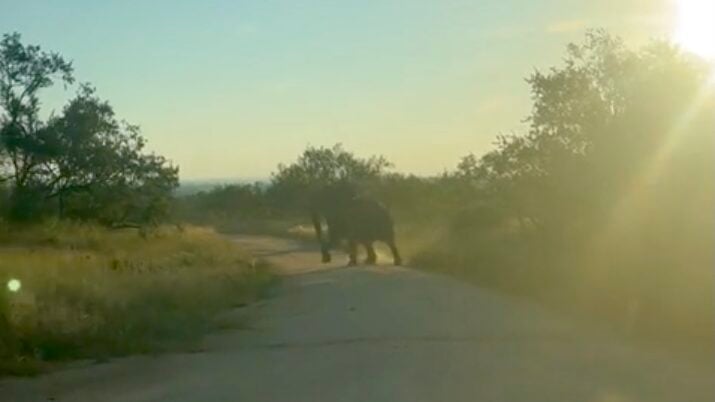 This gave the vehicle just enough time to put some distance between themselves and the charging giant safely.
