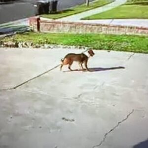 Owner Amyre Henderson captured footage of her soon-to-be 3-year-old pooch in a precarious position with her hind legs stuck in a fence in her yard.