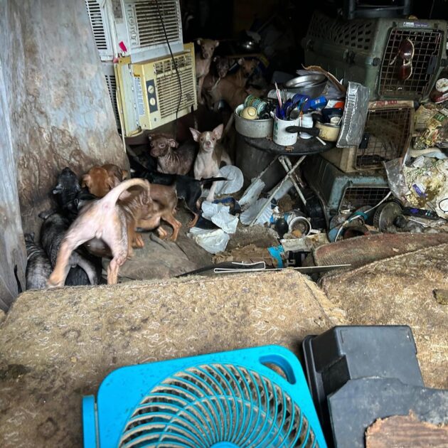 The environment was appalling. The trailer was piled high with garbage, and the dogs likely had to fight over scraps of food just to survive.
