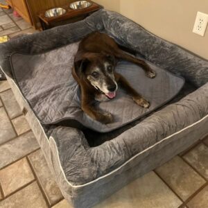 Today, Toothless is thriving. He is deeply attached to his mom and often follows her everywhere. Despite ongoing treatment for heartworm and some eye issues, he is finally healthy, happy, and loved.
