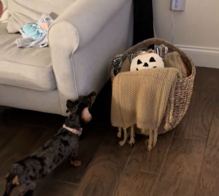However, while she prepared a few things, she noticed that her dog, Zoe, had a strange reaction to something that was in a small basket.