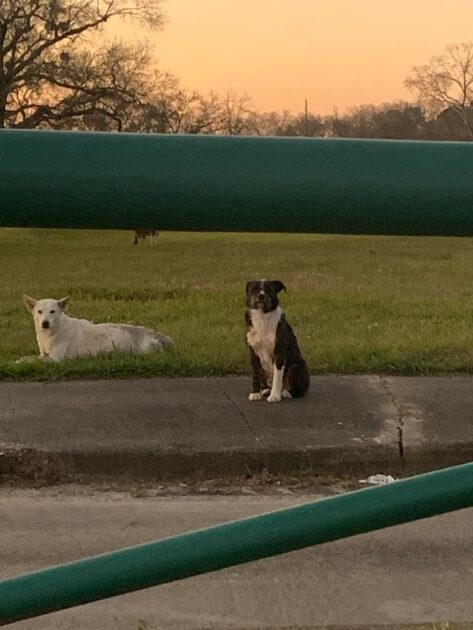 The two strays, later named Betty White and Allen, had moved from the road to a patch of grass, resting together and awaiting help.