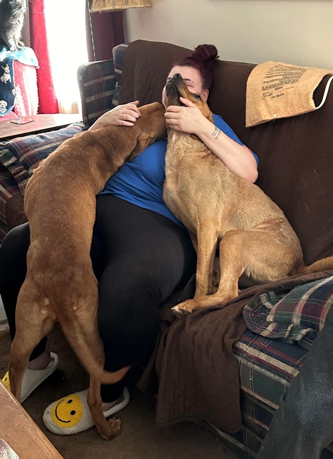 When HAAU volunteers arrived to pick up the two sisters, their joy multiplied as they watched the dogs react with excitement.