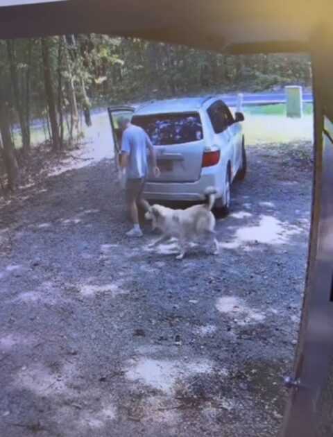 The footage reveals an owner parking his car on the side of the road. In the next moment, he opens the car door and lets the dog out.