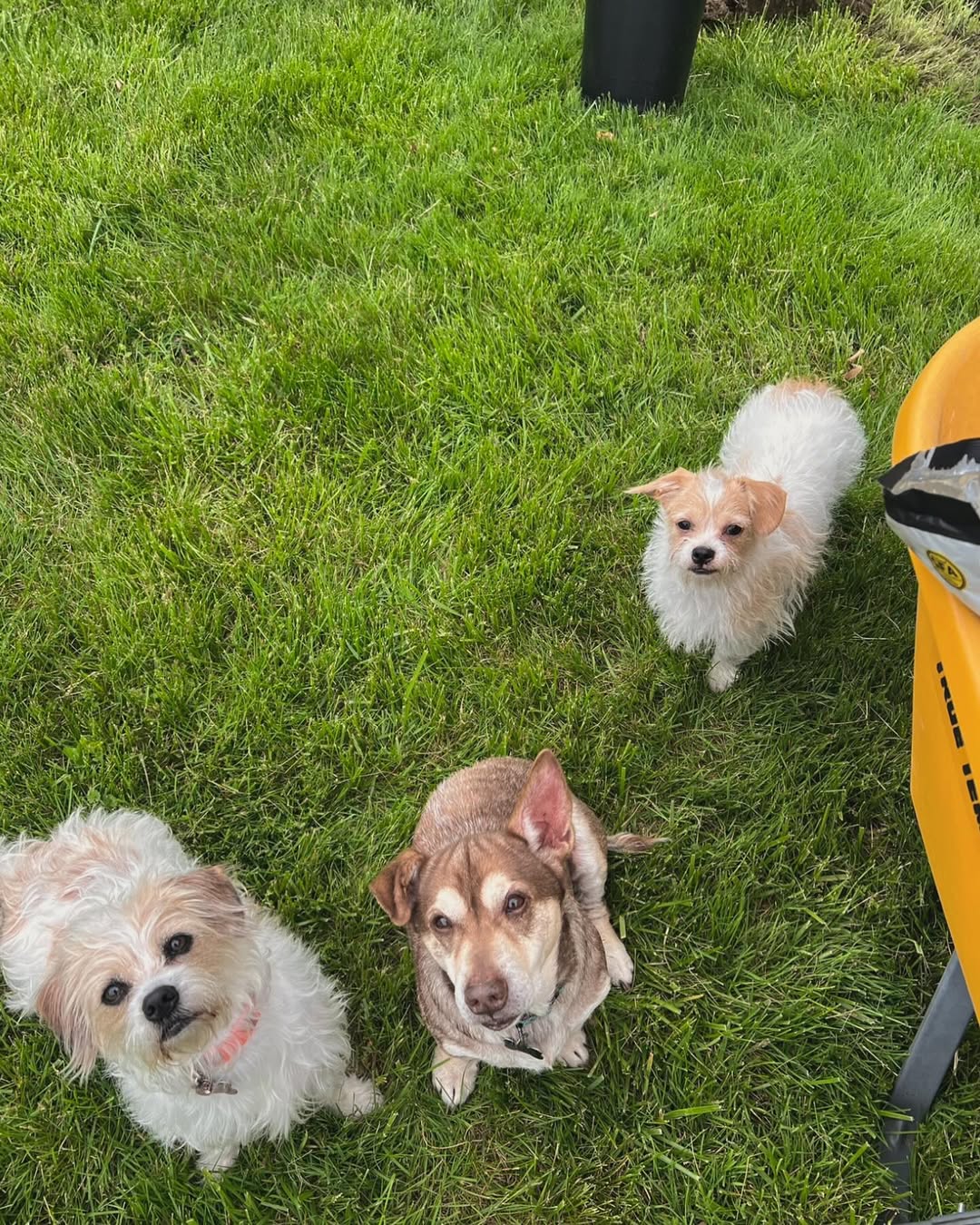 Thanks to Brittani, her husband, and their kids, Roger’s new life is filled with simple joys. He takes walkies, has cozy blankets, and spends time playing in the yard with other dogs.
