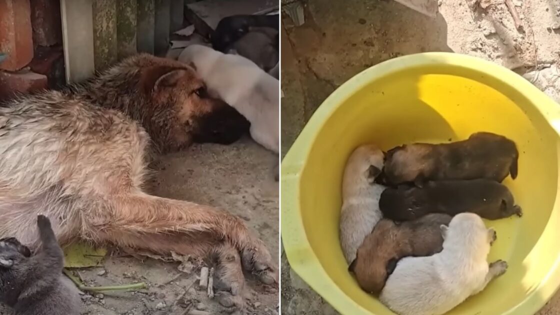 When I first saw the picture of this dog momma putting every ounce of her remaining energy into protecting her babies, my heart shattered into a million pieces.