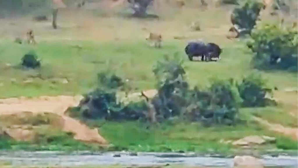 The rest of the pride watched cautiously from a distance, assessing the situation. They were lying down as the attack occurred, not seeming to grasp the extent of the hippo’s wrath.