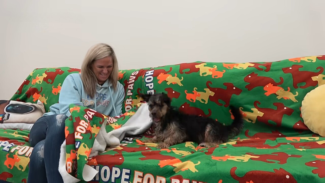The bath was the key: Megatron’s true, adorable personality finally began to shine through the trauma. He transformed into a joyful, playful pup, hopping around on the couch and wagging his tail nonstop. He even began rolling onto his back, demanding belly rubsβ€”a clear, beautiful sign that trust was quickly blossoming.