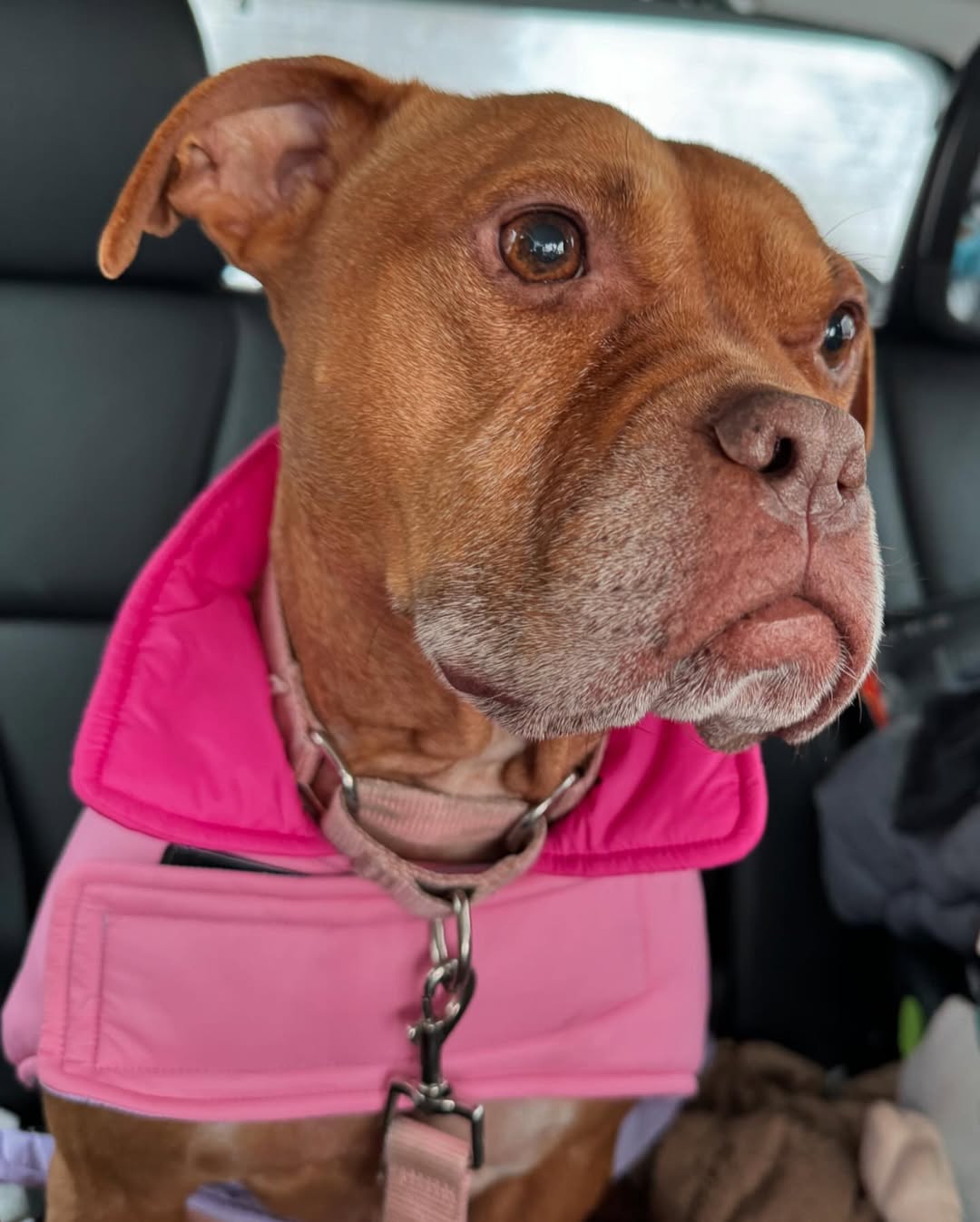 Shelter life was overwhelming for Trixie. She struggled with stress and showed reactivity toward other dogs, indicating she needed a calm, patient home.