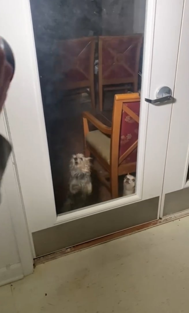 However, while reviewing the footage, he noticed something unsettling. One of the dogs kept glancing away while barking, as if someone else was present in the room.