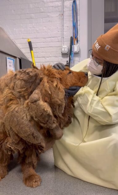 This dog, later named Sprout, was burdened with an overwhelming amount of matted fur. Her appearance was the very image of neglect, and her discomfort was impossible to ignore.
