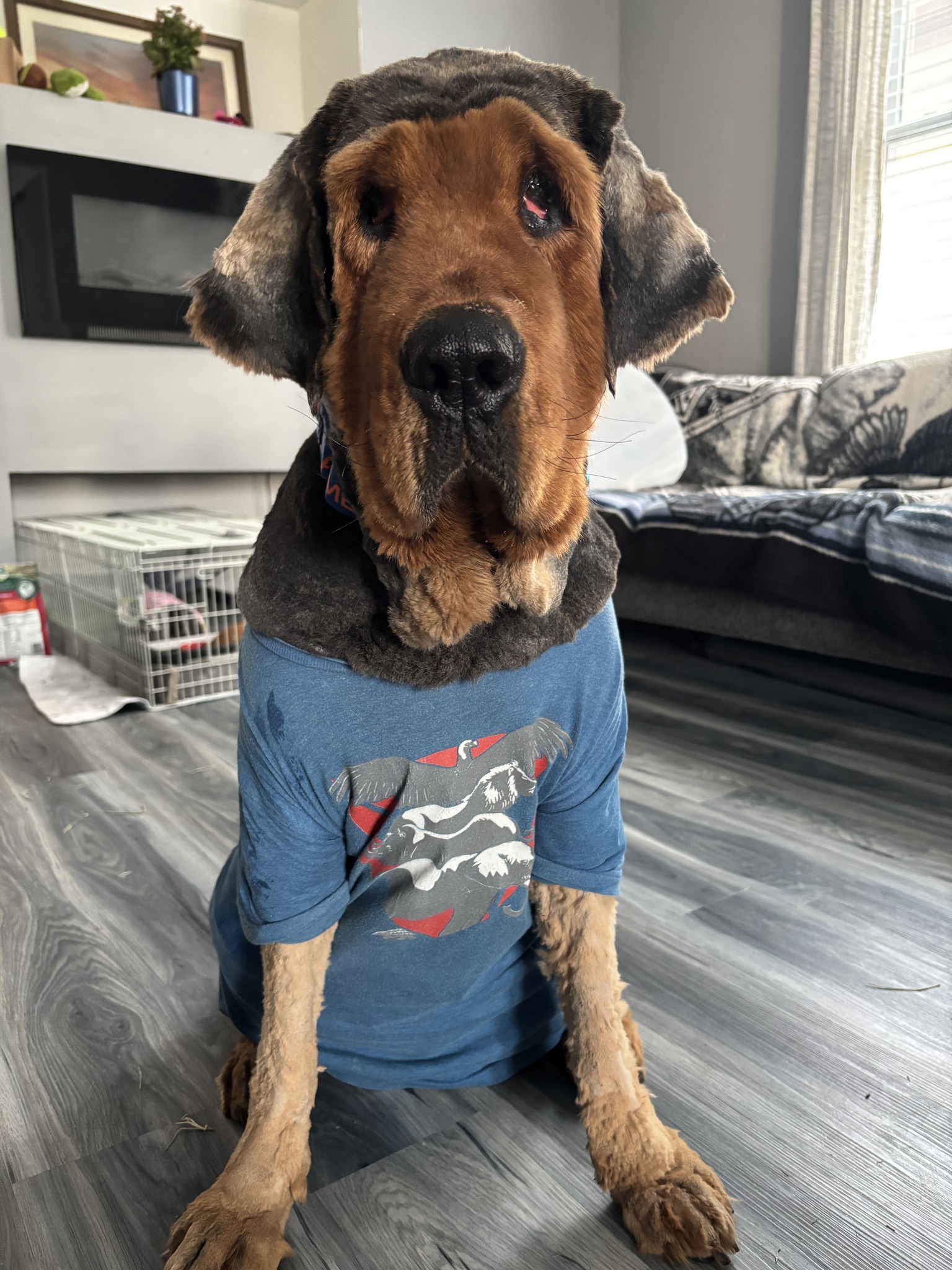 Sprout had been discovered dragging more than thirty pounds of tangled, matted fur behind her. Her condition was visibly painful. Instead of living the carefree life most dogs enjoy, Sprout had been enduring a series of health complications caused by the mats.