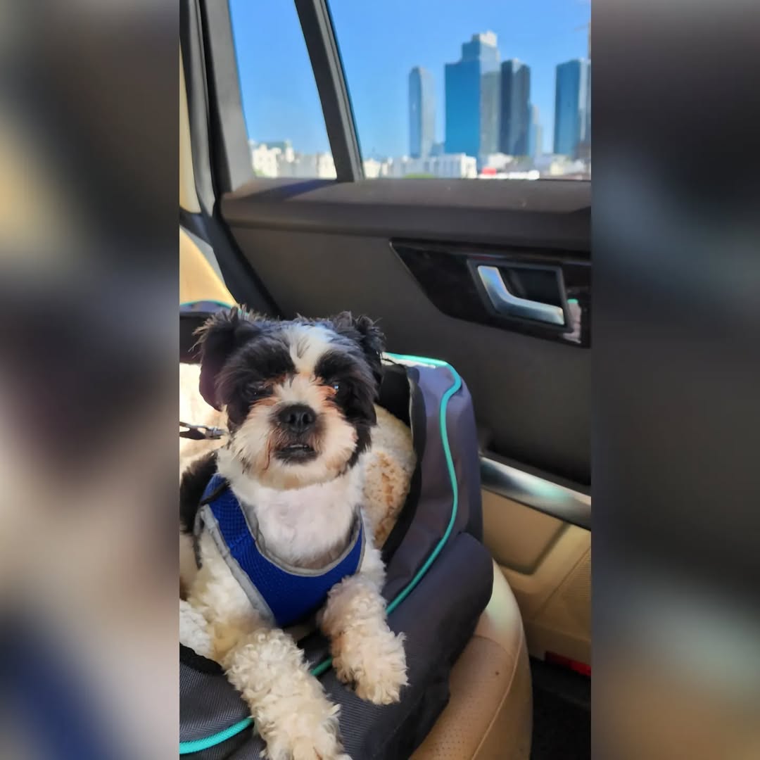 Now, he spends his days surrounded by love. He rides in the car with joy, wags his tail constantly, and follows his new family wherever they go.