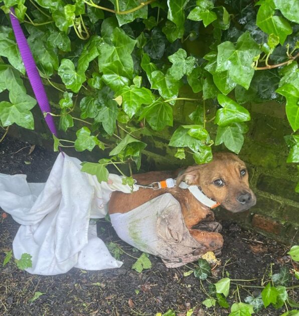 Wrapped in a T-shirt and cruelly fastened to a fence, the dog had been abandoned by those he believed were his family.