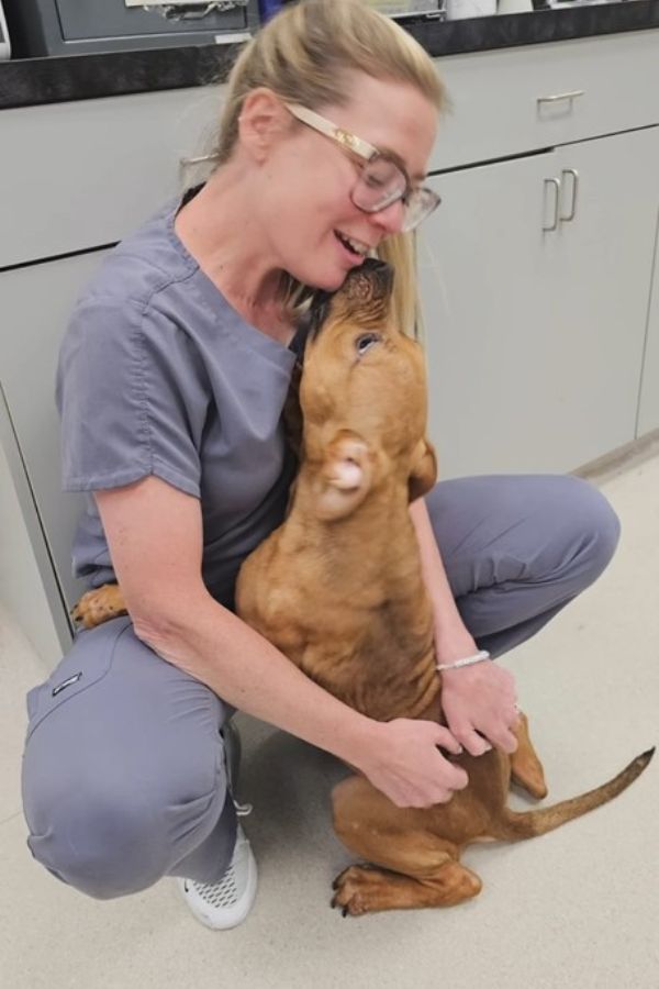 Captivated by his resilience and sweetness, the medical team gave him their full attention, and Teddy responded with affectionate kisses and trust.