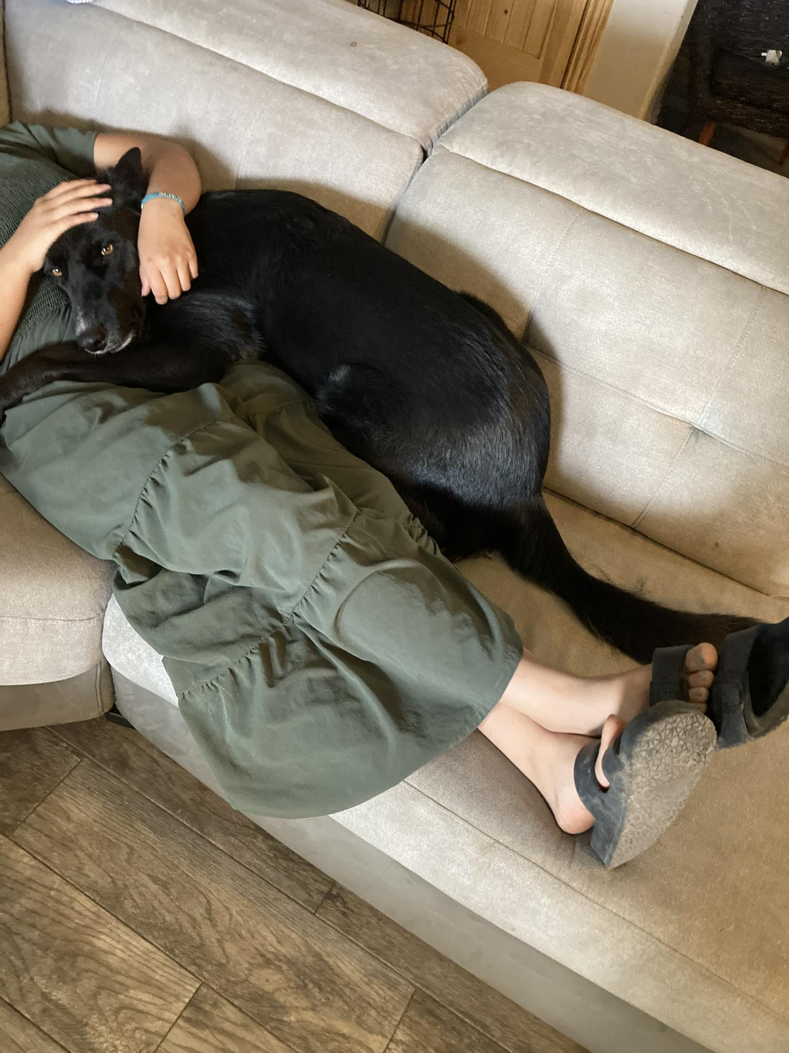 “She loves young kids and really enjoys hugs from babies, she knows to be super gentle!” they wrote in a Facebook post. “She loves snacks, snuggles and other dogs. She does enjoy retrieving things and a good game of fetch!”