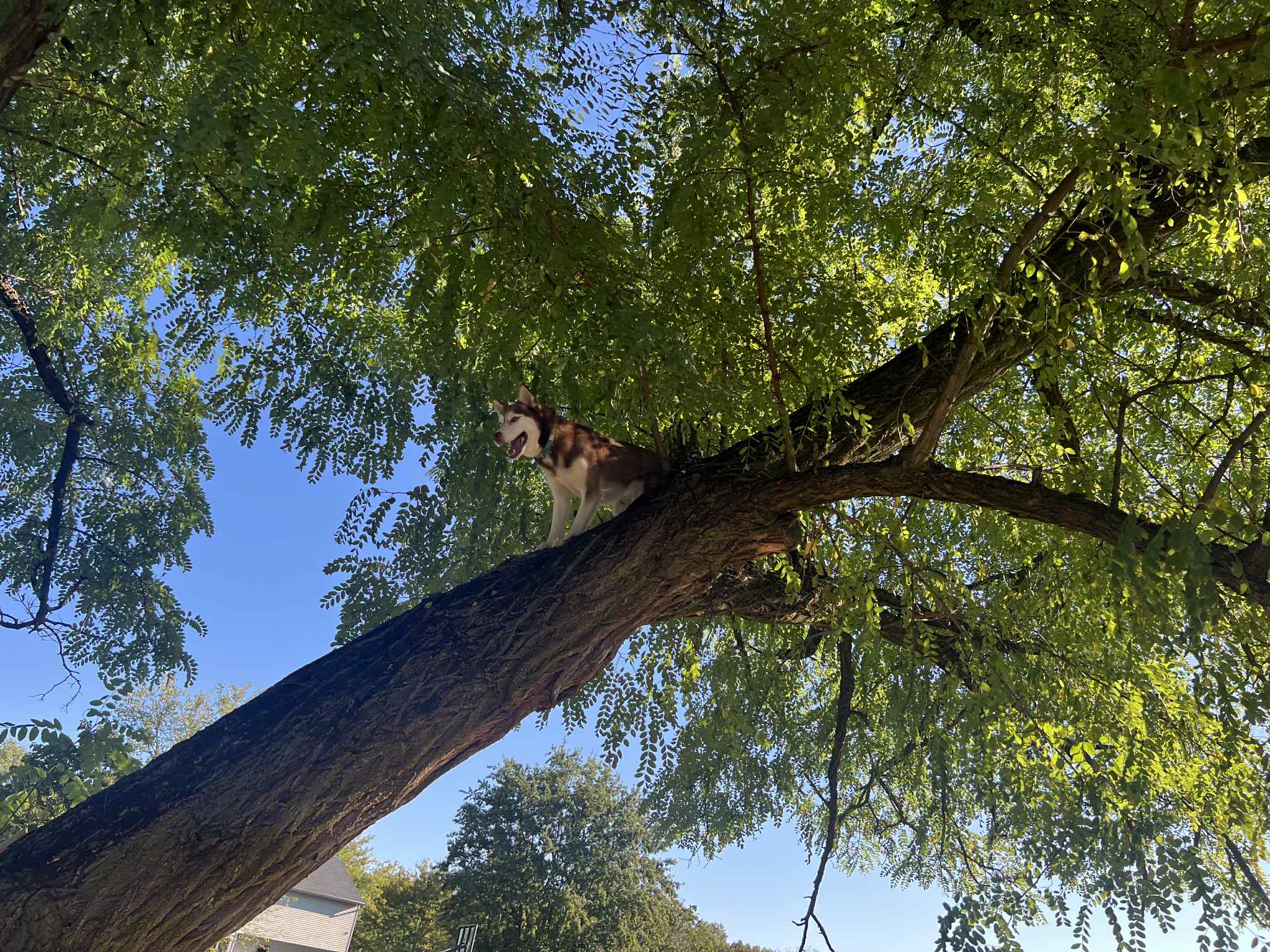 When her family came outside, they froze. Their beloved husky wasn’t in the yard. She was in a tree.