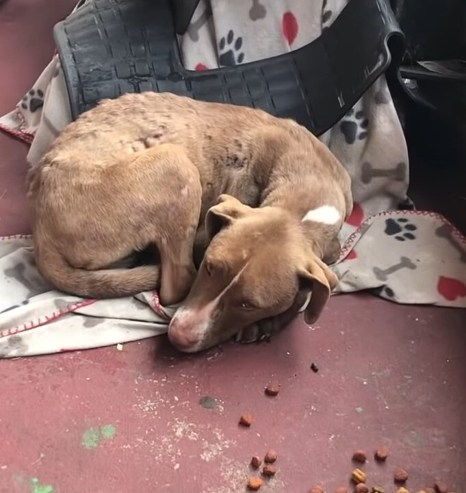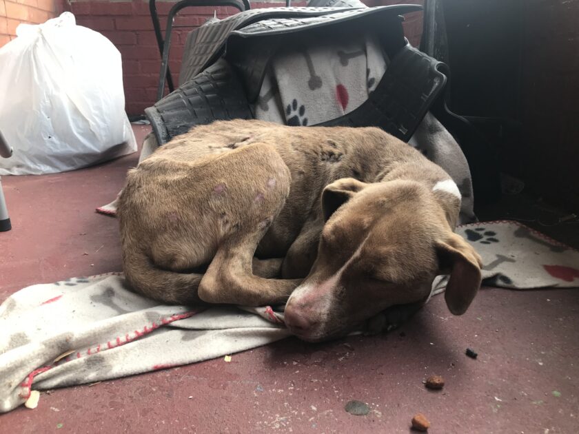 The homeowner was heartbroken when she saw the frail dog resting outside her door.