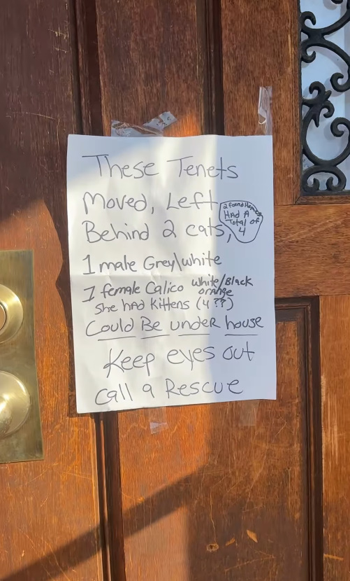 Apparently, the former tenants left behind a cat and her kittens at the property. This shocked Patricia Mitnaul, who was a content creator for the management.