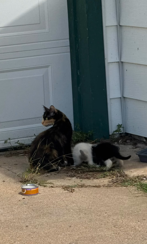 They went to look for them and were surprised to find one cat nearby. The desperate mama cat immediately walked up to Mitnaul and asked for help.