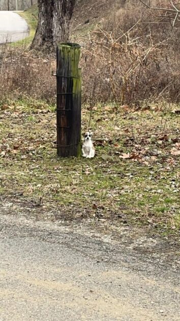 As a driver traveled down a rural Kentucky road, something small caught their attention. Slowing down, they noticed a puppy fastened to a tree by the side of the road. Horrified, the driver immediately called Lewis County Animal Shelter for help.