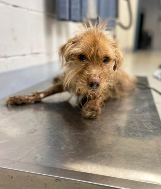 When Travolta arrived at the Kentucky Humane Society, his condition left the staff stunned. His coat was filthy, tangled, and matted across every inch of his body.