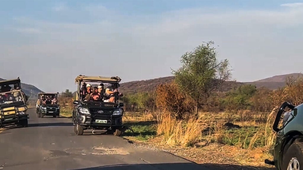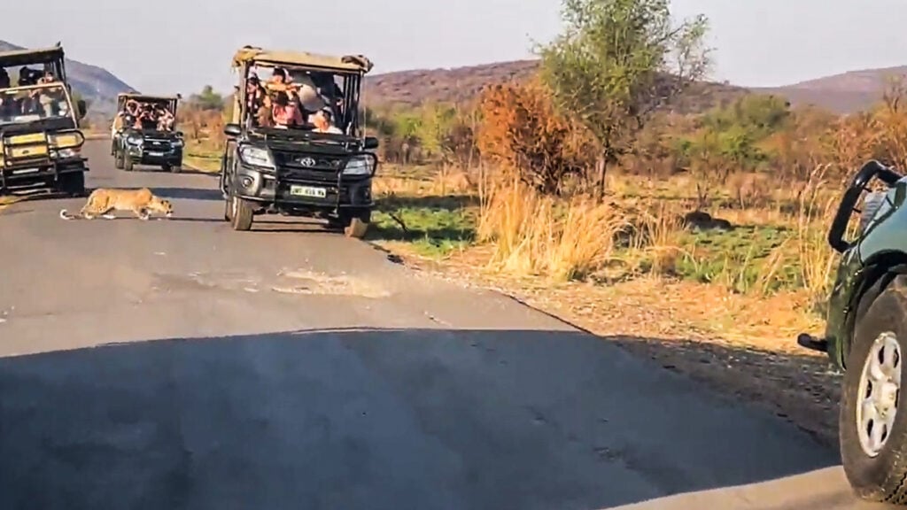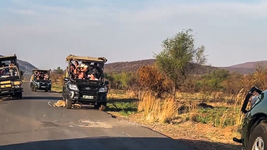 All this is to the amazement of the vehicle’s passengers who jostle for a close-up view of the passing predator.