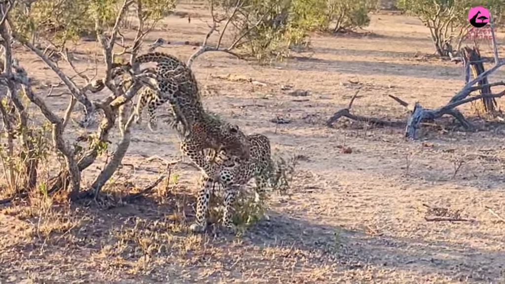 The mother leopard seemed to be in the way every time, and she provided the ‘soft place’ for him to fall. One had to take one’s hat off to her as she didn’t even flinch, in spite of the cub’s rather large size.