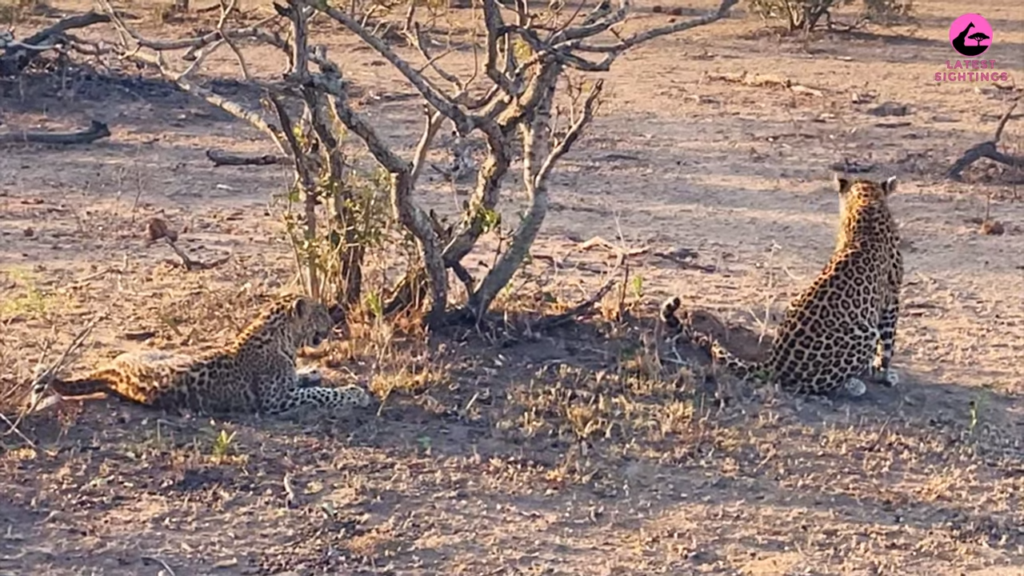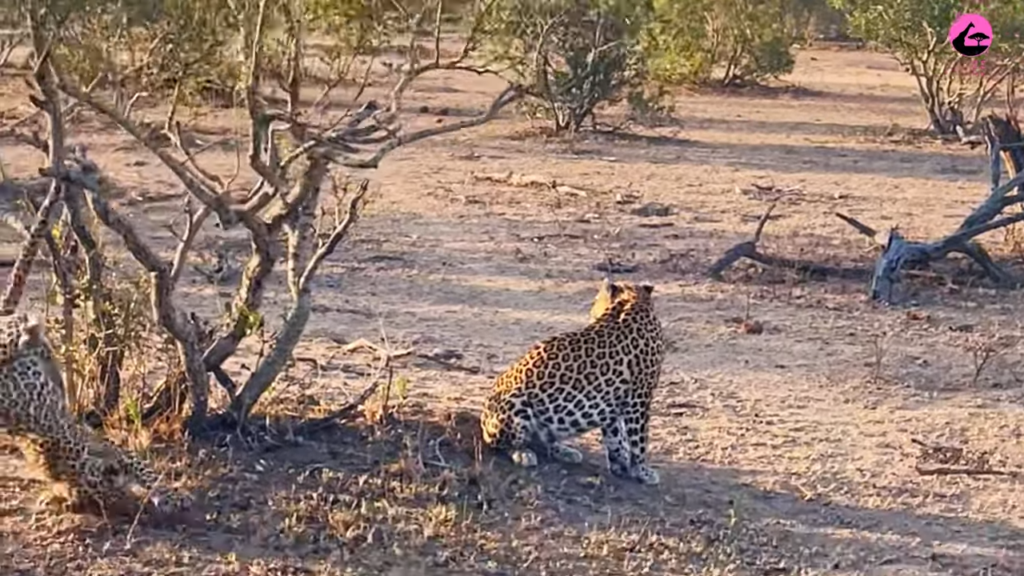 At this point, the mother leopard appeared to be ready to move on and started to walk away from the tree.