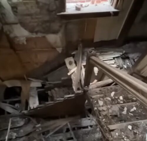 However, he soon came tumbling from the branches and hit the ground, leaving a cloud of dust around him. This time, he managed to miss his mother, who now sat with her back turned to the camera.